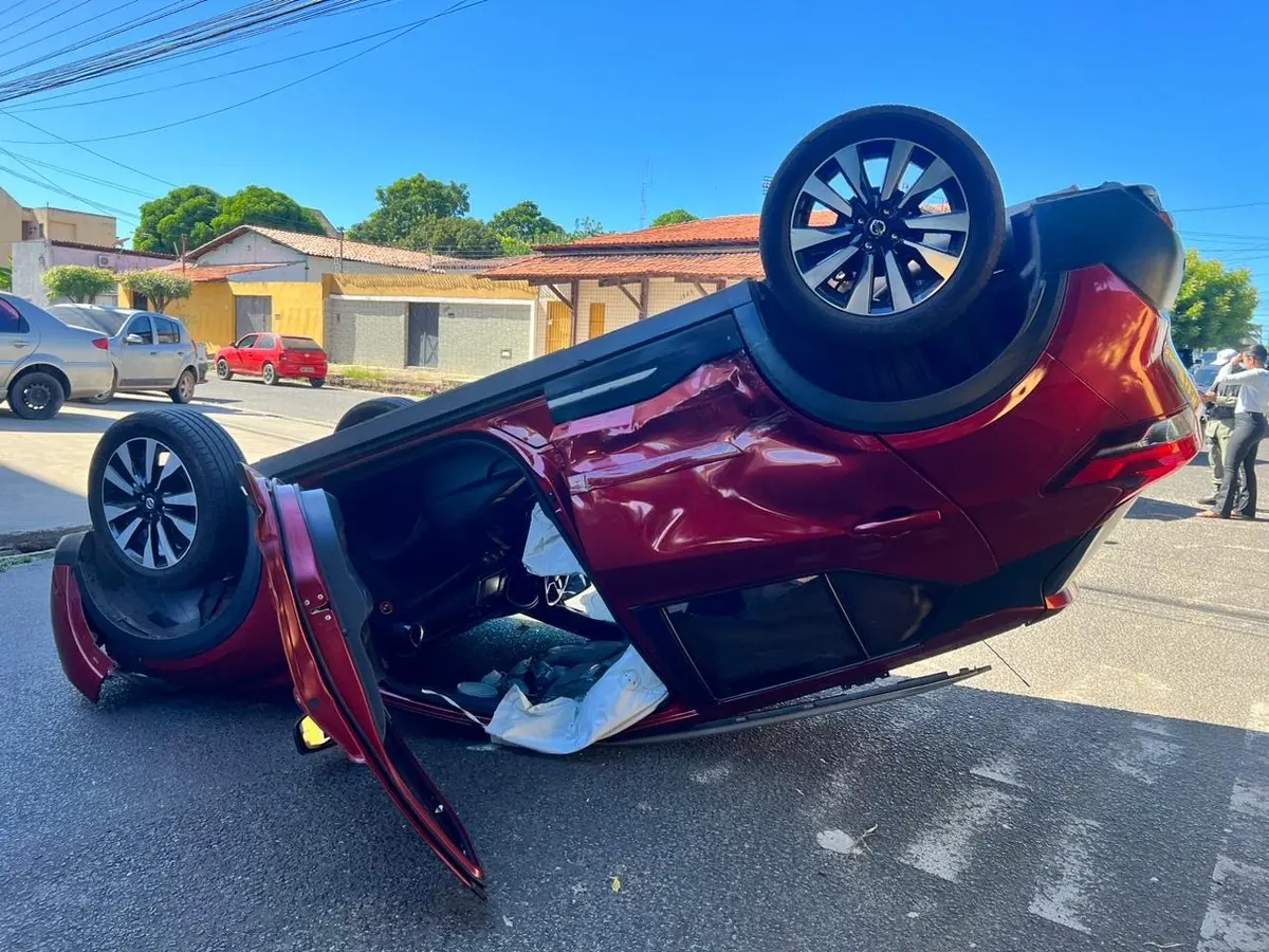 Carro capota após colisão em cruzamento na zona Sul de Teresina