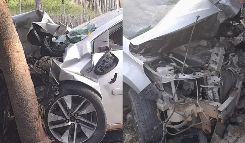 O impacto também fez com que o carro atingisse uma árvore, resultando em danos graves na parte dianteira do veículo. Apesar disso, os ocupantes do carro não sofreram ferimentos graves e foram levados ao Hospital Regional Dirceu Arcoverde.