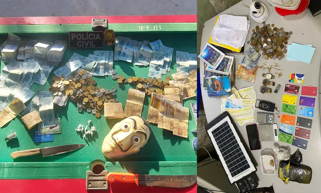 A polícia apreendeu mais de R$ 16 mil em dinheiro, diversos celulares, uma balança de precisão, materiais relacionados ao consumo e embalagem de drogas, além de documentos que comprovam a comercialização e contabilidade dos entorpecentes. "Uma quantidade considerável de drogas, maconha, crack e cocaína, muitos documentos, anotações, dois veículos, motocicletas, dinheiro", disse o delegado ao Conecta Piauí.