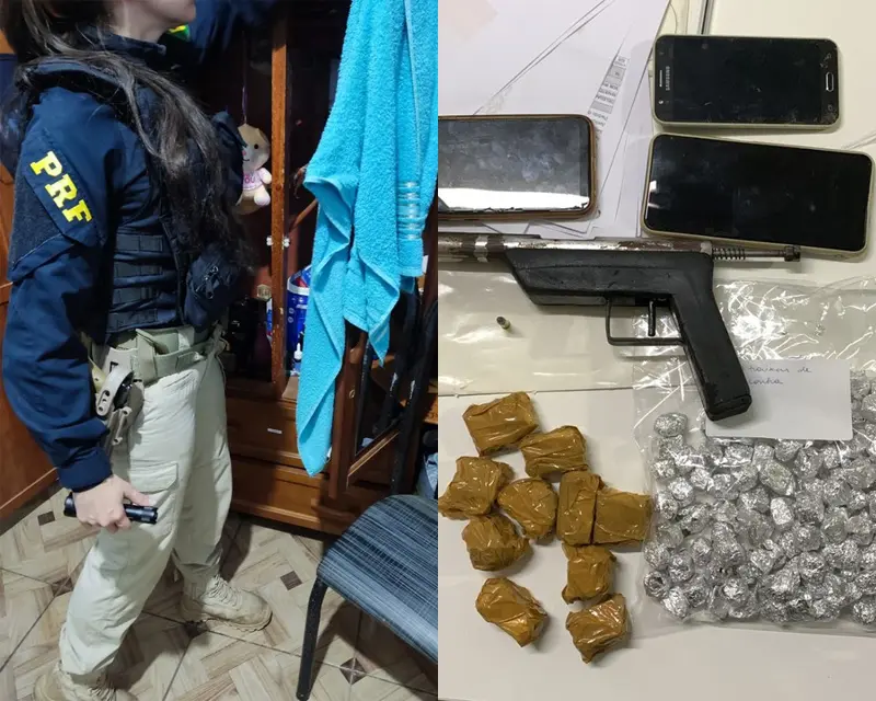 Durante as vistorias, os cães farejadores Peter, Hulk e Klaus demonstraram eficiência ao localizar 110 porções de maconha, além de uma arma de fogo de fabricação artesanal, no calibre .22, pronta para o uso. O material estava em posse de um menor de idade que responderá por ato infracional análogo aos crime de tráfico de drogas e porte ilegal de arma de fogo.