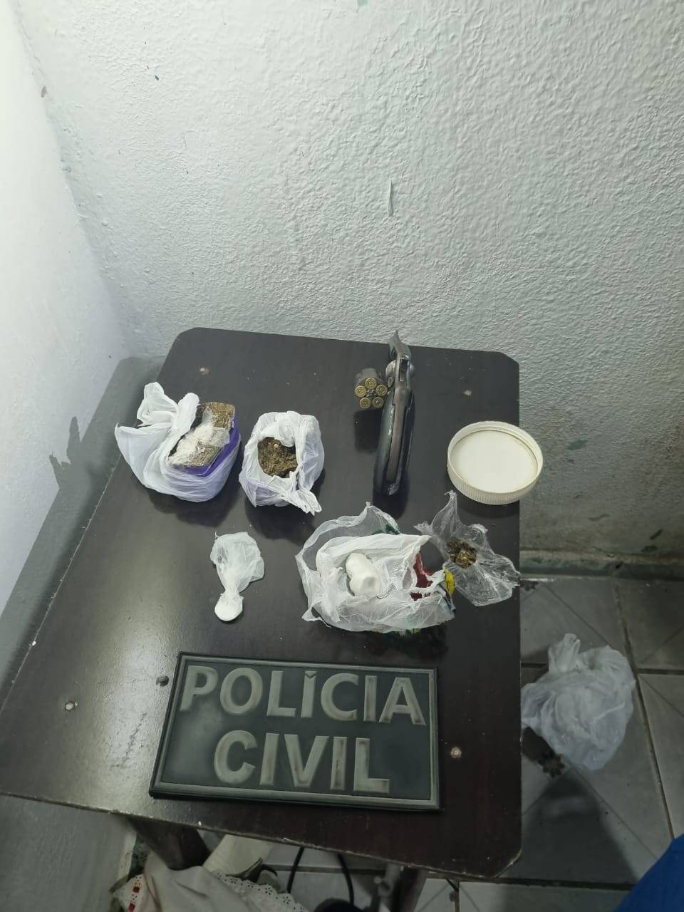 A prisão ocorreu em cumprimento a mandado de busca e apreensão que foi executado pela Gerência de Polícia Especializada (GPE) resultando na apreensão de maconha, cocaína e um revólver calibre 38.