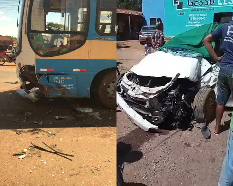 Vítima ficou presa nas ferragens devido à força da batidaUma mulher de 31 anos ficou em estado grave após uma colisão frontal entre um carro de passeio e um ônibus na manhã desta segunda-feira (26/06), na BR-343, em Altos. Com o impacto, a vítima ficou presa nas ferragens do veículo.