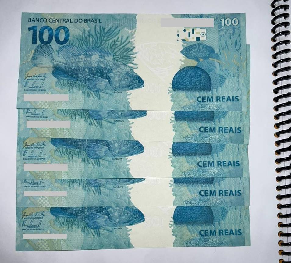 A PF acompanhou o agente dos Correios durante a realização da entrega da encomenda e abordou o suspeito no momento em que ele recebeu o pacote contendo folhas encadernadas e, escondidas em meio a elas, cinco cédulas falsas de R$ 100, com número de série repetido, totalizando R$ 500.