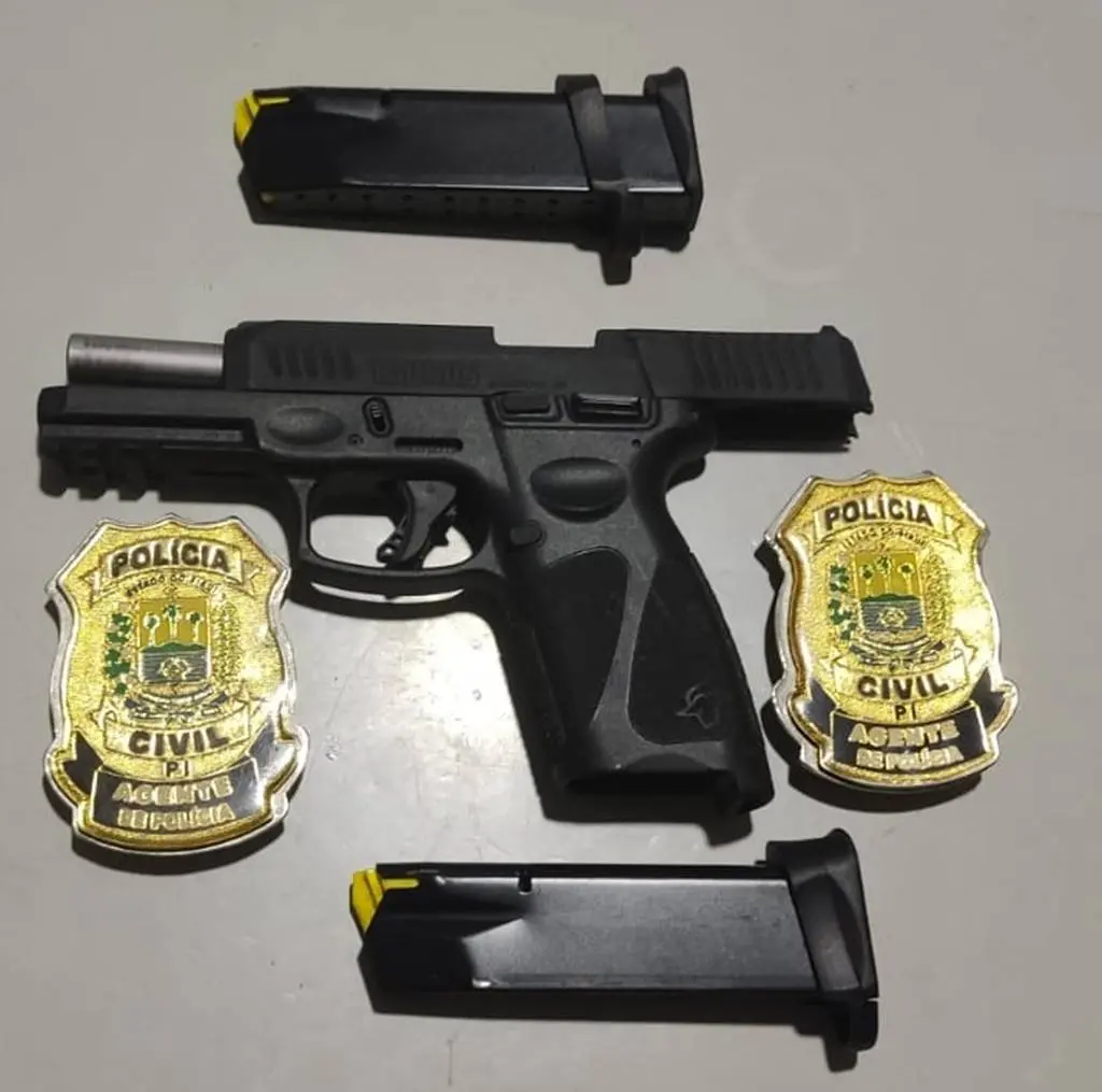 Durante a vistoria no veículo, os policiais encontraram uma pistola Taurus e dois carregadores.Durante a blitz da campanha “É Por Todos Nós”, realizada na noite dessa quinta-feira (18/05), em Teresina, a equipe da Polinter realizou a prisão de um nacional por porte ilegal de arma de fogo, após avistar um veículo modelo sandero de cor vermelha em atitude suspeita. Os agentes resolveram fazer um acompanhamento tático e, em ato contínuo, realizaram uma abordagem policial.