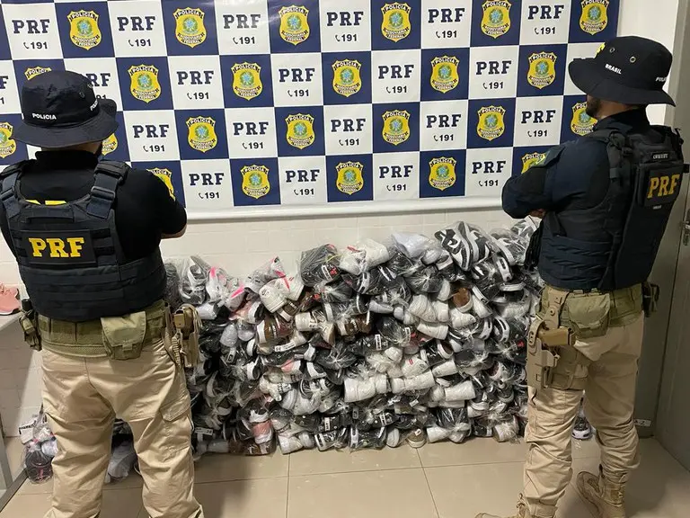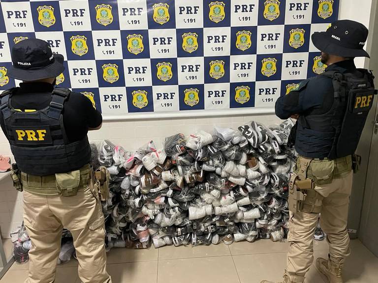 PRF apreende 174 calçados falsificados em um ônibus em Floriano (PI)