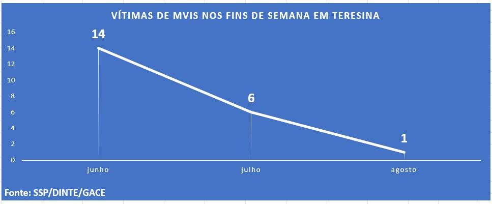 Conforme dados da SSP-PI, o número representa uma redução de mais de 57% nas ocorrências nos fins de semana do mês de julho (06), se comparado com o mês de junho (14).