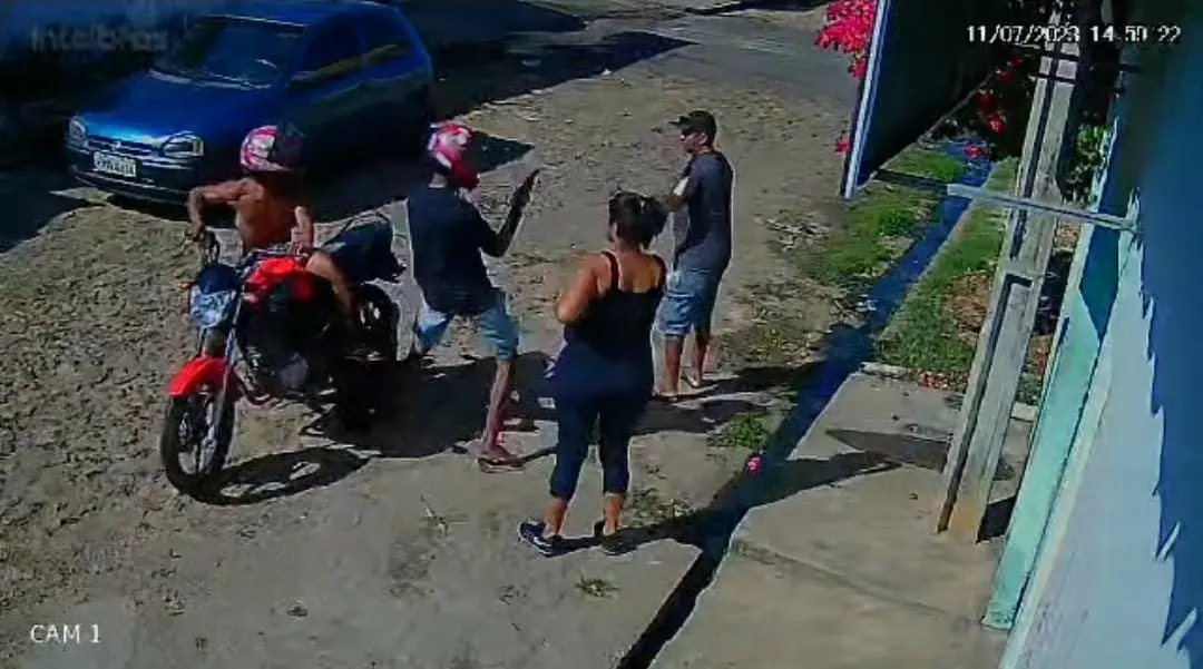 As vítimas estavam saindo de uma residência no momento em que foram abordadasNa tarde desta terça-feira (11/07), uma câmera de segurança flagrou o momento em que dois indivíduos armados em uma moto Yamaha factor vermelha realizaram assalto na região da Santa Maria da Codipi, na zona Norte de Teresina. As vítimas, sendo elas um homem e uma mulher, estavam saindo de uma residência quando foram abordadas pelos assaltantes.