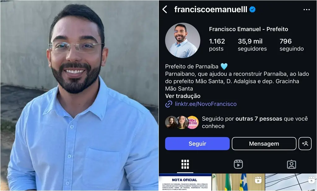 Após romper com família Mão Santa, prefeito de Parnaíba troca de nome no Instagram