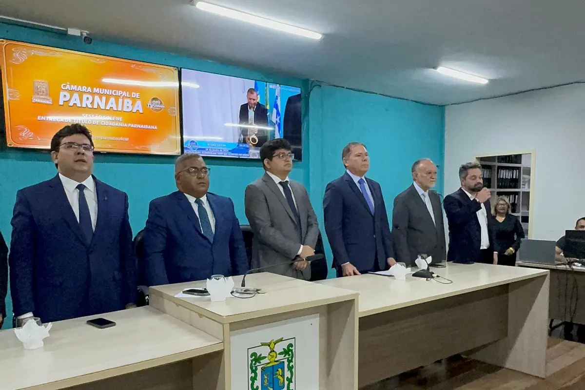 O governador Rafael Fonteles e o deputado estadual Dr. Hélio estiveram presentesA Câmara Municipal de Parnaíba entregou, nessa sexta-feira (14/06), o título de cidadania a três personalidades piauienses: desembargador Arnaldo Boson Paes, Dr. Olavo Rebelo de Carvalho Filho e Jaylson Campelo.