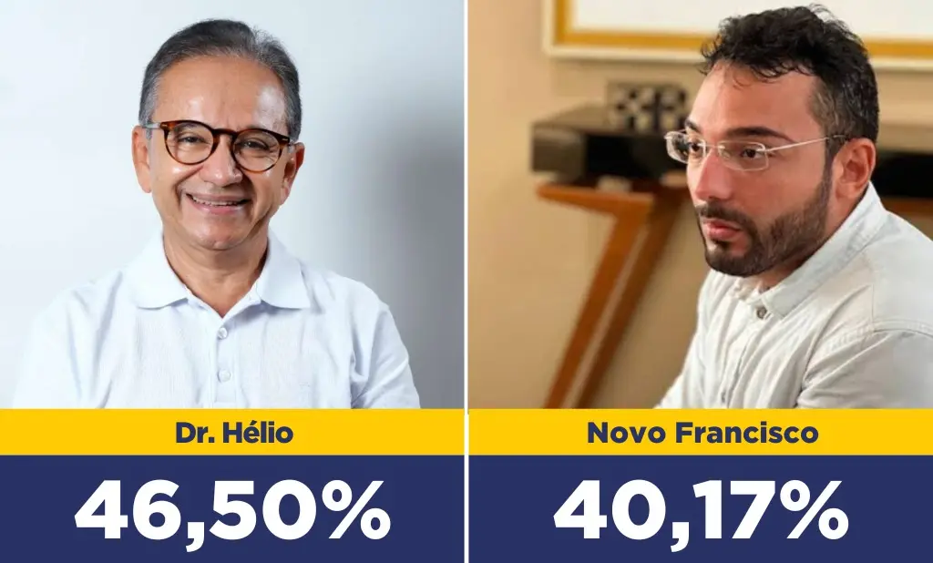 Dr. Hélio consolidou sua vantagem sobre o segundo colocado, Novo Francisco (PP), que aparece com 40,17%. O ex-prefeito Zé Hamilton (PSD) ocupa a terceira posição, com 5,83%, seguido por Erivelton Fontenele (DC), com 0,67%. A pesquisa aponta ainda que 4,67% dos entrevistados estão indecisos e 2,17% pretendem anular o voto ou votar em branco.