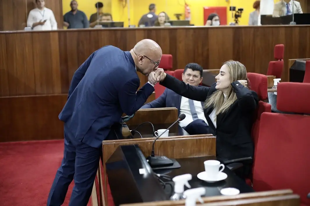 Franzé aparece beijando a mão da deputada (no plenário da Alepi), que reage com um sorriso. O petista ainda tece elogios, na postagem, à oposicionista.