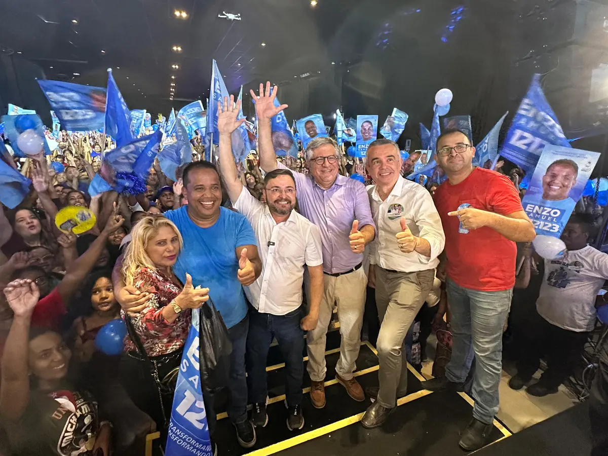 O candidato a prefeito de Teresina, Fábio Novo, e o Ministro das Relações Institucionais, Alexandre Padilha, estiveram presentes no evento, que demonstrou a força da candidatura de Enzo Samuel na capital, que frequentemente aparece bem colocado nas pesquisas de intenções de voto para vereadores.