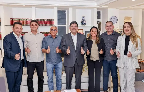 O deputado estadual Hélio Rodrigues participou de uma reunião com o governador Rafael Fonteles, acompanhado de uma comitiva de São Gonçalo do Gurgueia, formada pela prefeita Roselídia Lustosa, o vice-prefeito Osman Lira, o ex-prefeito Paulinho, a liderança política Renê Marques e a assessora Luanna Portela.