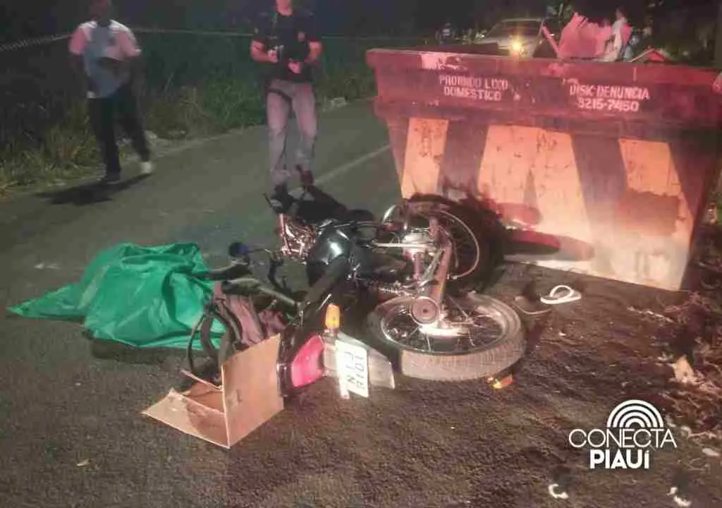 No final da tarde deste sábado (17/06), um motociclista identificado como Antônio da Cruz Cardoso de Moraes, de 44 anos, morreu após colidir em um container no bairro Cidade jardim, zona Leste de Teresina. Não há sinalização no local onde está o container.
