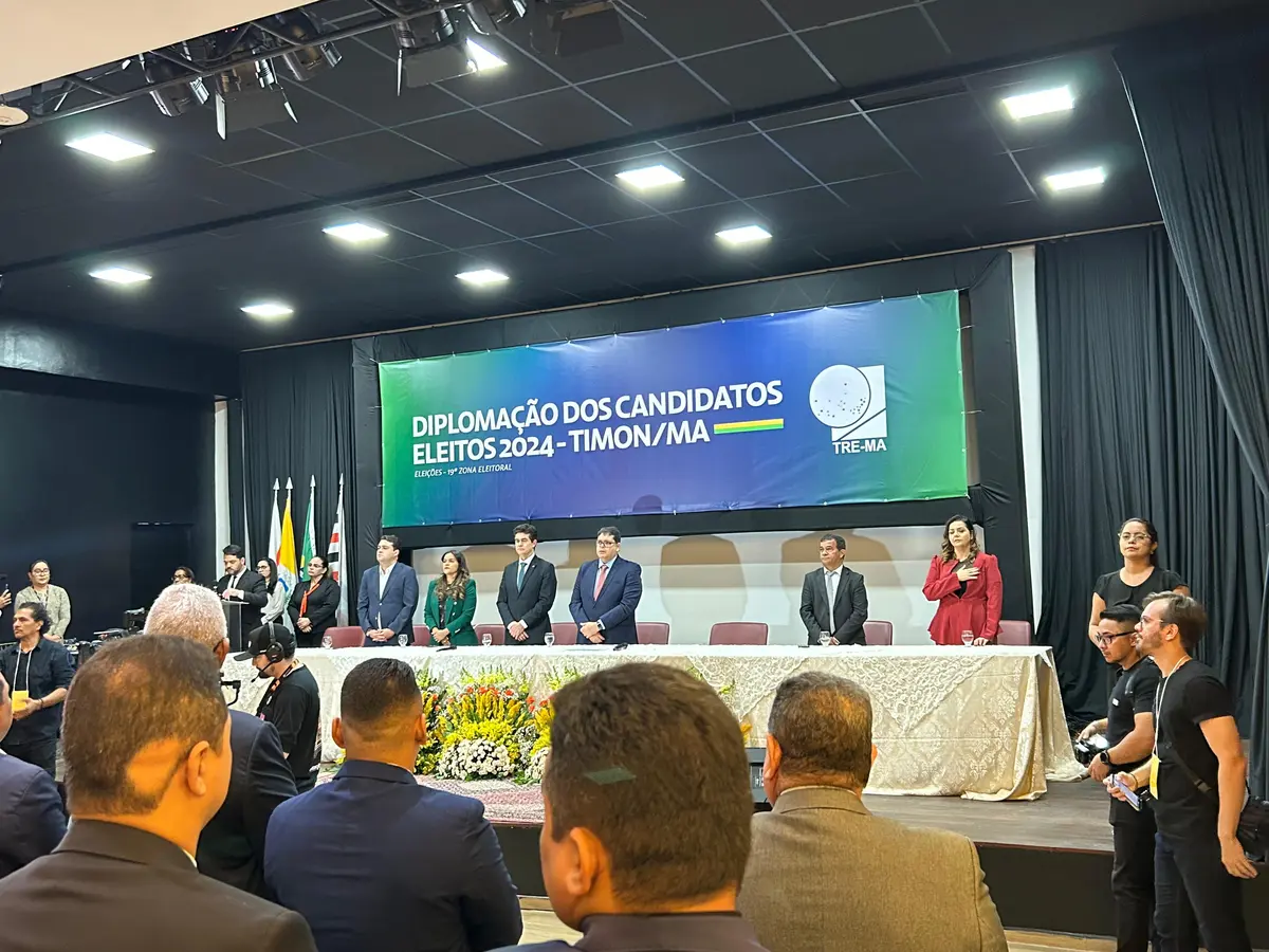 Durante a solenidade, foram diplomados o prefeito, o vice-prefeito e os vereadores eleitos, além dos suplentes. A cerimônia representou o reconhecimento da Justiça Eleitoral à escolha feita pela população timonense nas urnas e contou com a presença de autoridades, familiares e convidados.