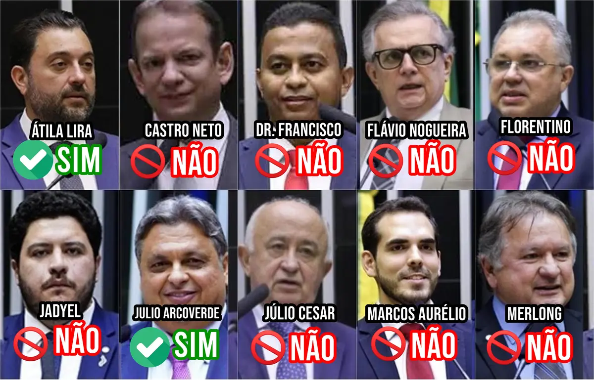 Para que o projeto tramite com prioridade no plenário, são necessárias ao menos 257 assinaturasDos dez deputados federais eleitos pelo Piauí, apenas dois — Júlio Arcoverde e Átila Lira, ambos do Progressistas (PP) — assinaram até a noite desta sexta-feira (04/04) o requerimento de urgência para o Projeto de Lei 2.858/2022, que prevê anistia aos envolvidos nos atos antidemocráticos de 8 de janeiro de 2023, em Brasília.